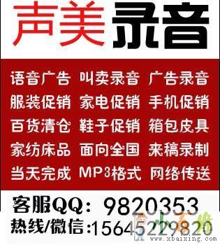 我们把您的宣传语变成优美的旋律www.xbaixing.com小百姓网。体现了录音广告的魅力,对您的商品印象深刻,销量倍曾,我们用声音架起,商家与消费者的桥梁,传播万千家企业优质商品欢迎www.xbaixing.com。我们用声乐将传统的宣传,变成美丽的音符www.xbaixing.com小百姓网。